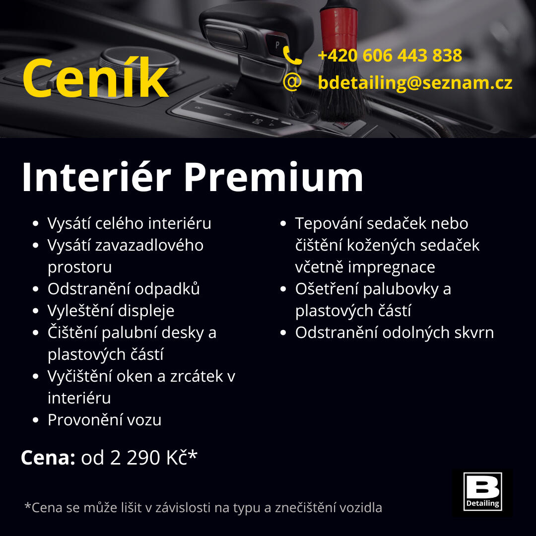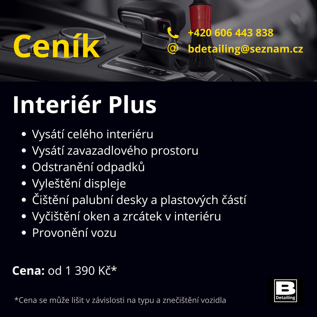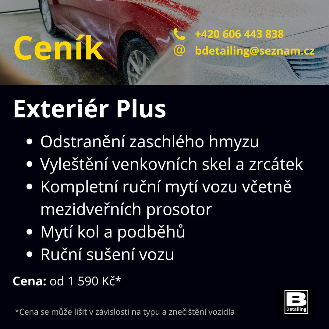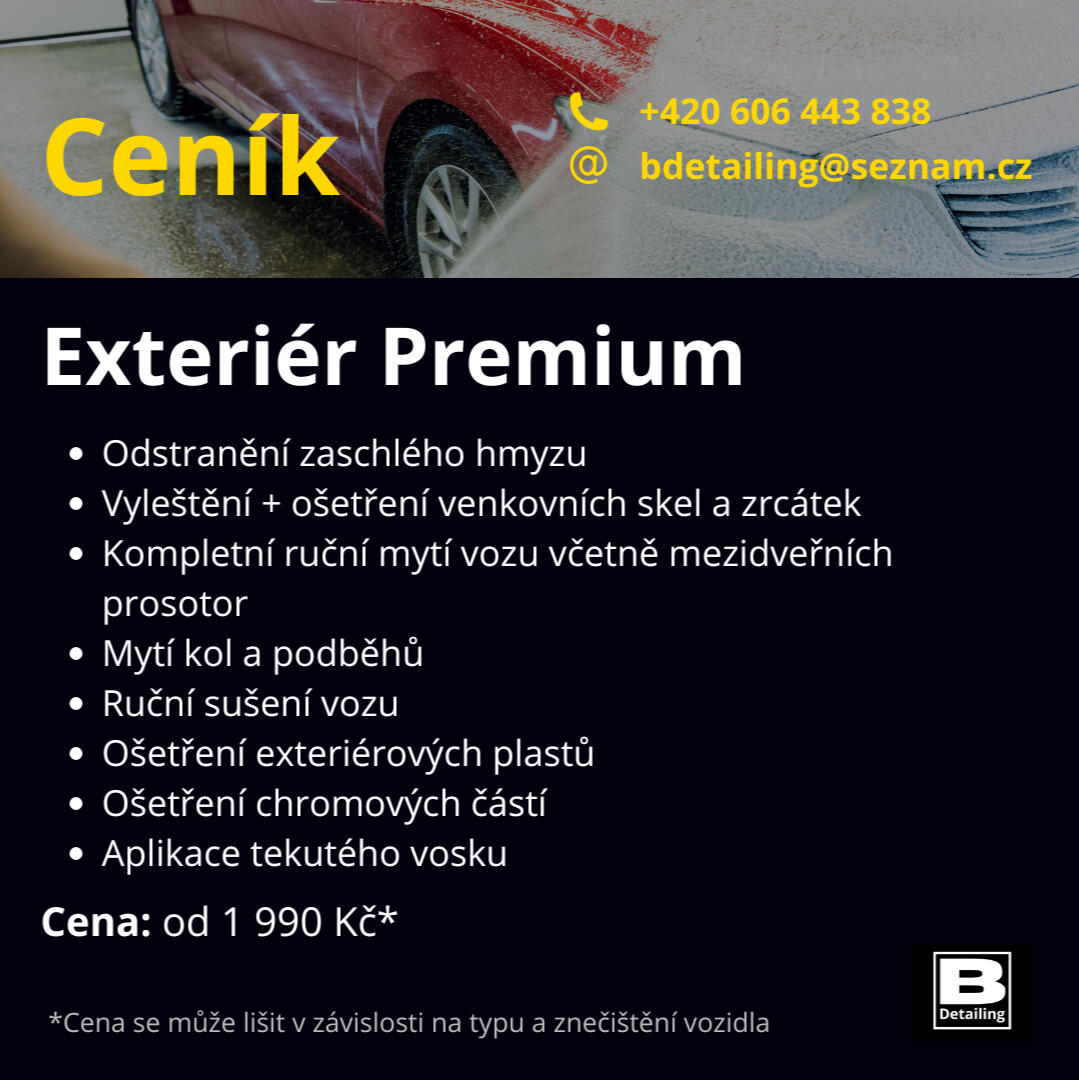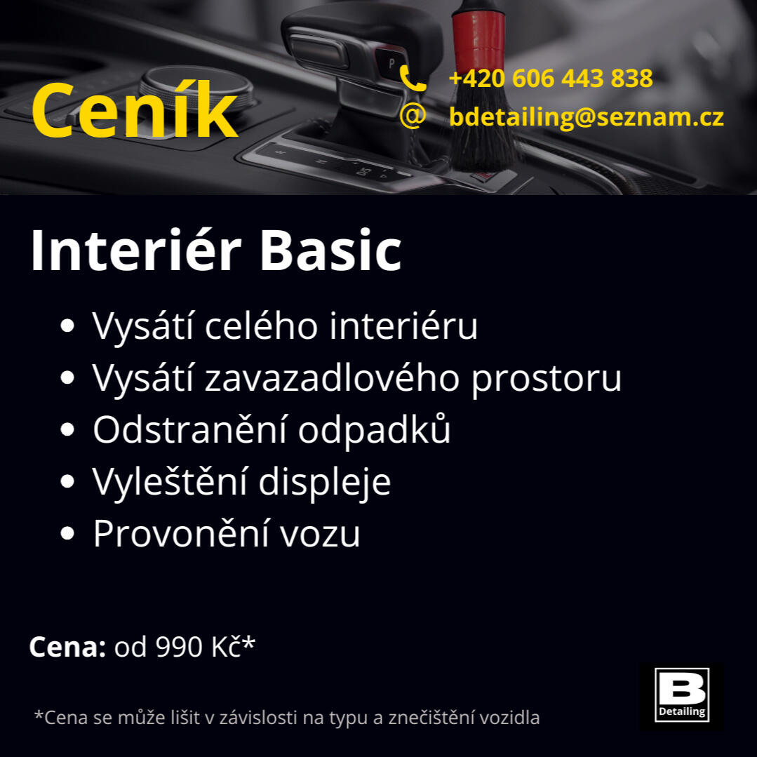 B Detailing není jen o tom „mít auto čisté“. Je to o pocitu, že sedáš do vozu, který vypadá, voní a působí jako nový. O detailech, které jiní přehlédnou – ale ty je cítíš hned, jak zavřeš dveře.🧼 Nabízíme profesionální detailing interiéru i exteriéru přímo u tebe doma, v práci nebo kdekoliv potřebuješ.📍 Působíme ve Znojmě a okolí a specializujeme se na mobilní služby, které neubírají na kvalitě.🔧 Každý balíček má jasně daný obsah, čas na kvalitní práci a přístup, který neřeší jen špínu, ale i dojem.